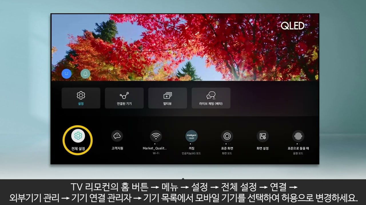 2. 스마트 화질 조정: 최신 삼성 TV는 스마트폰(SmartThings 앱)을 이용해 화질을 보정하는 '스마트 화질 조정' 기능을 제공합니다. 휴대폰 카메라를 TV 화면에 대고 안내에 따라 진행하면, 약 1분 내외로 전문가 수준의 색감 보정이 가능합니다. '영화 모드'를 기반으로 보정되므로 매우 편리하고 정확한 방법입니다.