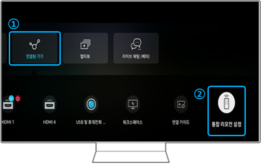① TV 설정 메뉴 진입: 리모컨의 '홈' 또는 '설정' 버튼을 누릅니다.